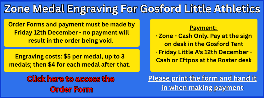 Athletes must be wearing FULL Gosford Uniform - Gosford Singlet/ Crop top and black bottoms - with age number and age patch attached to the top otherwise they will not be able to compete.